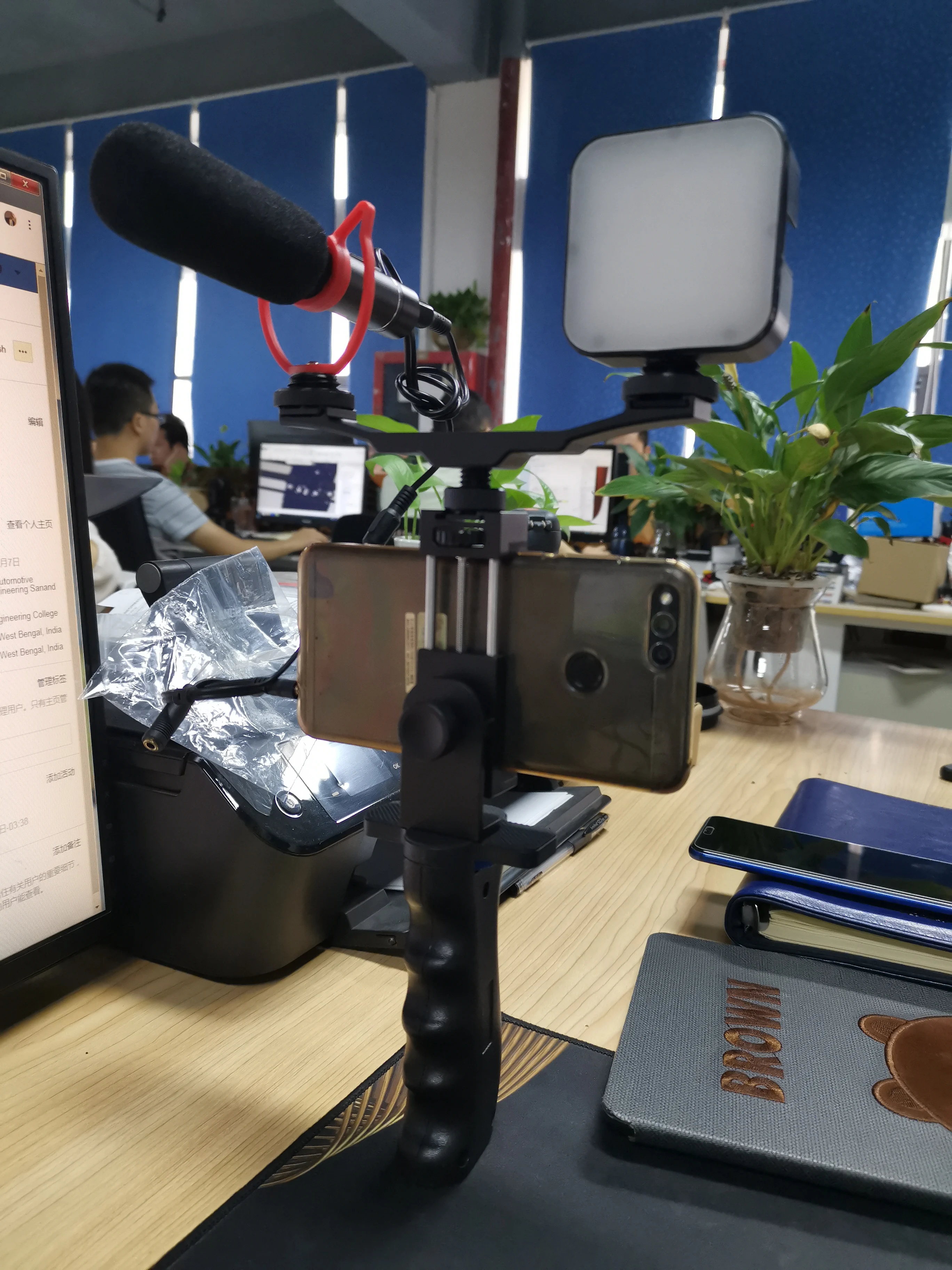 Mobile vlogging gear kit(mobile cage + light +microphone),