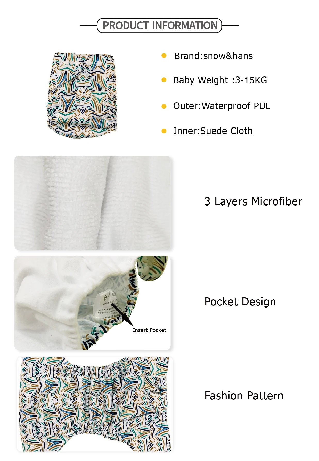 Material | Waterproof PUL+ Suede Cloth |