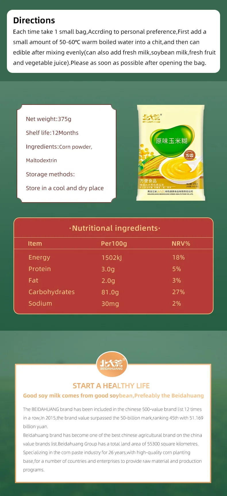 Heilongjang Beidahuang Green Health Food Co.,Ltd.It is based on the head office and backed by the production base of the