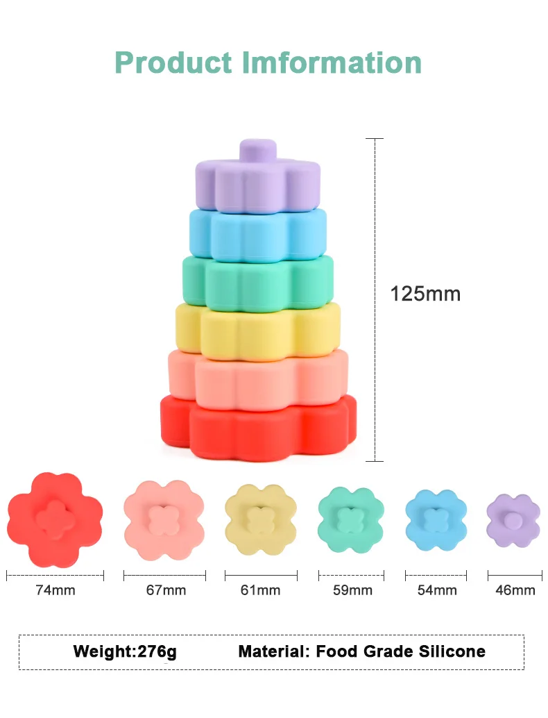 Product Name | lnfants Early Educational Stem Learning Game Soft Building Doll Up Flower Shape Baby Silicone Stacked Block Toys | ||||||