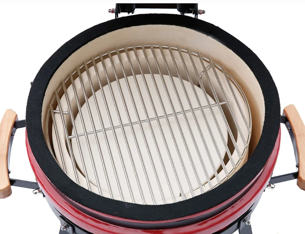 2. Put your cooking grid on the top of the fire ring, keep the top and bottom vent are open to make sure the ceramic bbq grill are well ventilated;