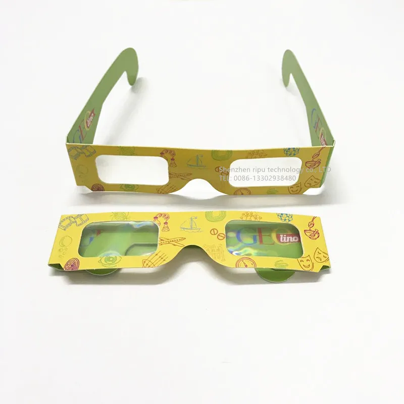 Glasses: plastic frame glasses, color printing paper glasses, adult style, children style, style can be designed and customized according to customer needs.