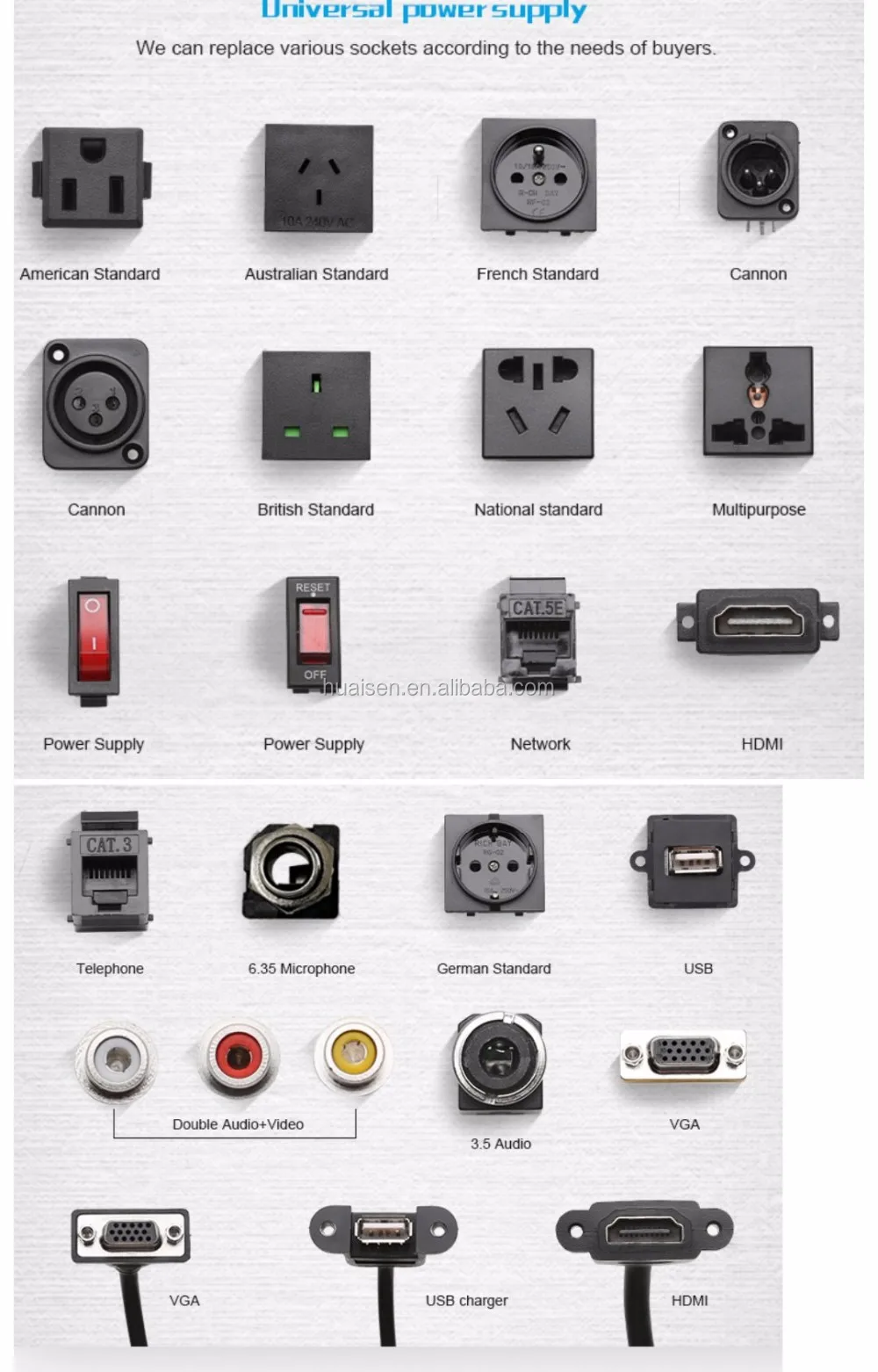 Configurations | Wireless charger*1,USB charger*2,German Standard power supply*3 (Support customized configuration modules) |