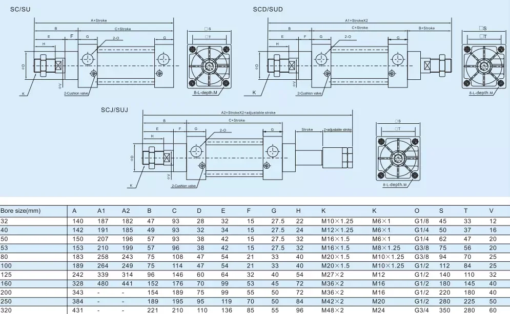 Bore(mm) | 32 | 40 | 50 | 63 | 80 | 100 | 125 | 160 | 200 | ||||||||