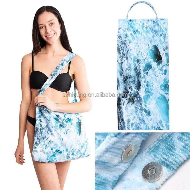 Description: 2022 New Design 100% cotton Terry Velour Custom Printed Beach Towel Bag
