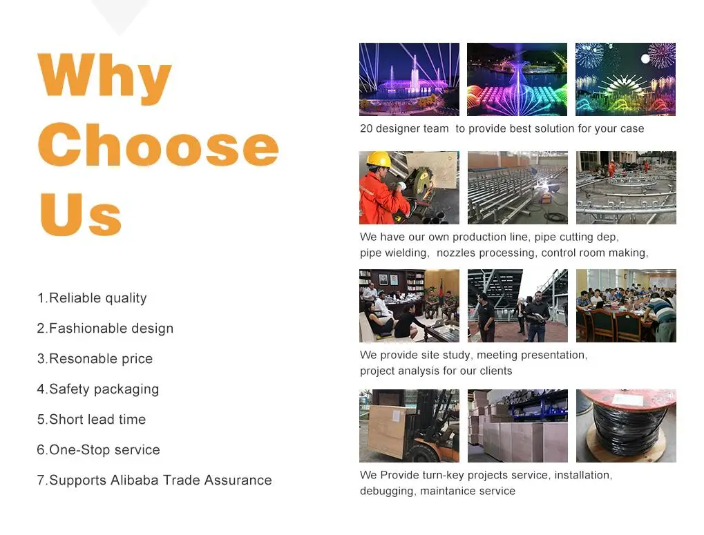 Reply: confirm some question in the below. 1. What is your Fountain Type(music or non-music, etc) 2. What is your Fountain Site & Size (picture or CAD drawing) 3. Water Quality (fresh water or sea water) 4. Fountain Budget (if you have) 5. Special Requirements (if you have) | ||||||||
