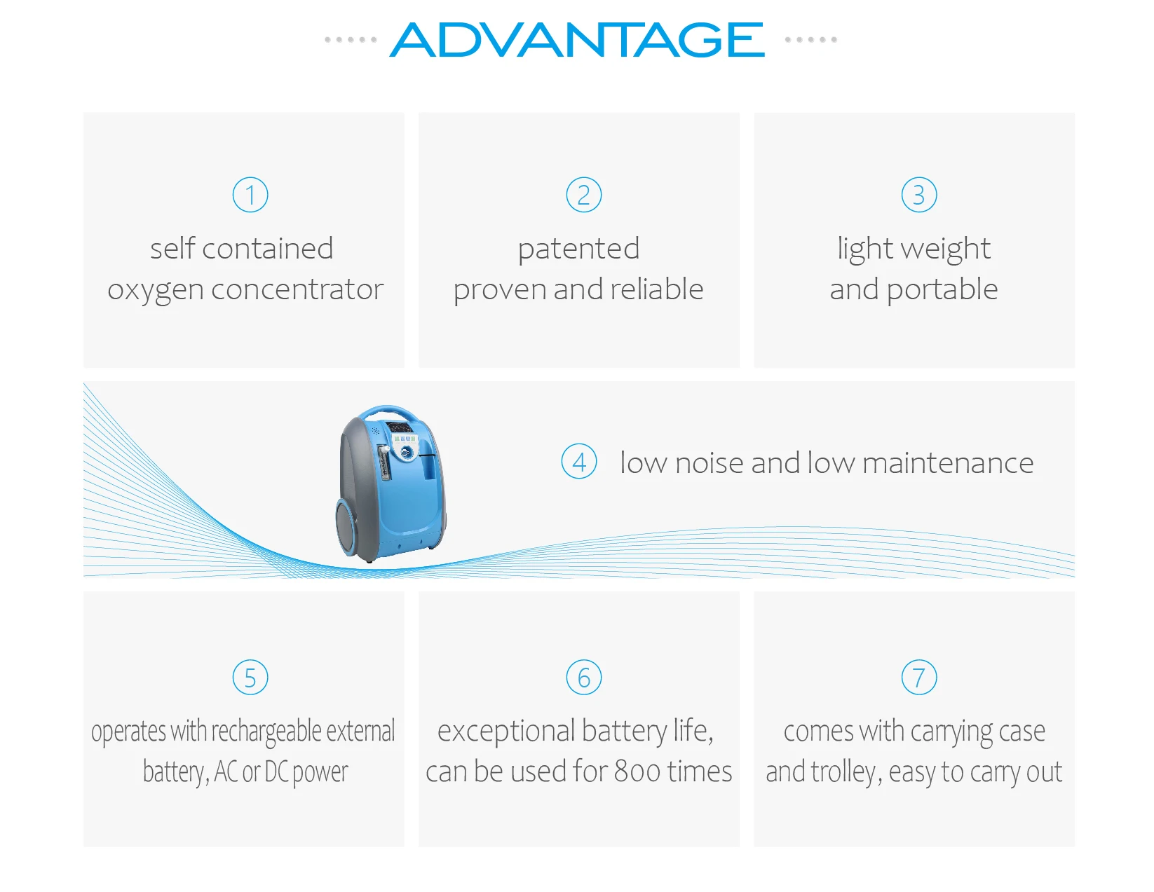 Self contained oxygen concentrator | patented proven and reliable | lightweight and portable | ||