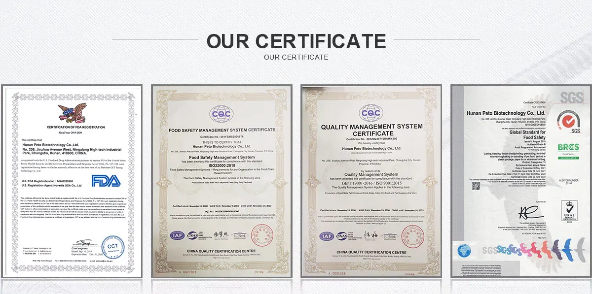 Our factory has 50000 square meters workshop, multi-functional physical and chemical testing laboratory and microbiological testing laboratory. It is a comprehensive service enterprise integrating research and development, production and sales of pet food.