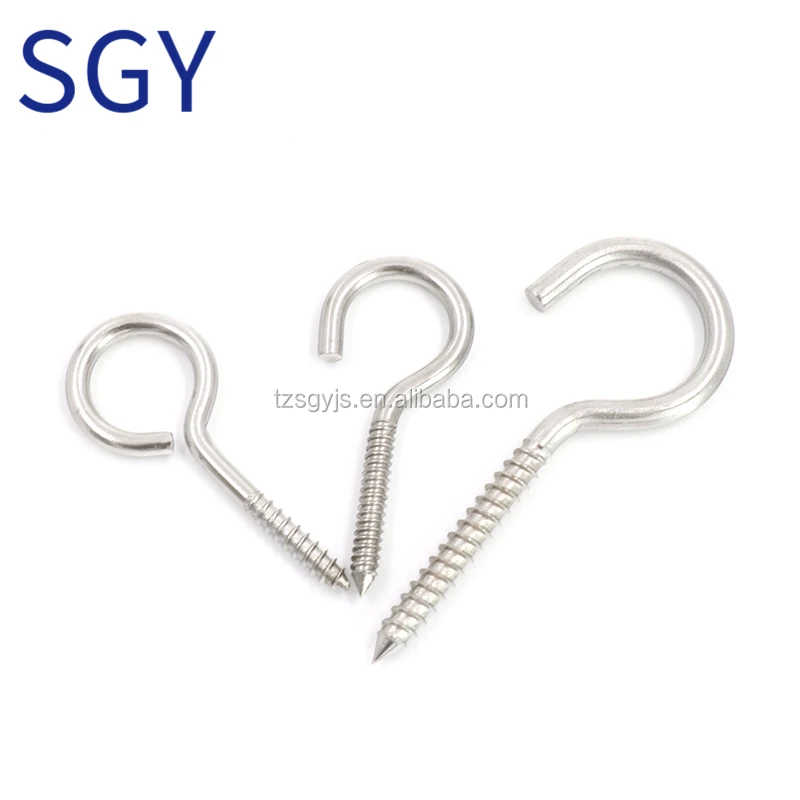 Stainless Steel Heavy Duty Structural Close Eye Cup Open Hooks Bent Wire Lag Wood Thread Self Tapping Eye Screw