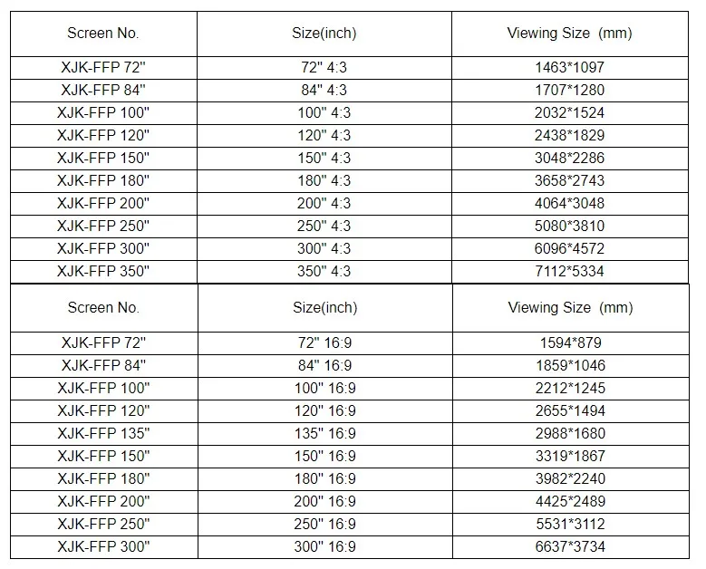XJK 150 180 200 220 250 300 inch 16:9 4:3 front and rear fast fold projection screen portable outdoor projector screen
