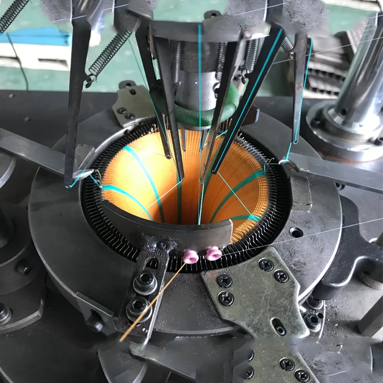 The machine is applied PP yarn , polyester and spandex to knit hair band in stripes or sinlge color. Advanced transducer can make the operation easier. The counter can show accurate output. It can stop automatically when it reaches the output set before. Also equipped with LCD and auto oil filler, can switch between Chinese and English. Key parts like cylinder and sinker stand are made from #45 steel. It is more durable for use.