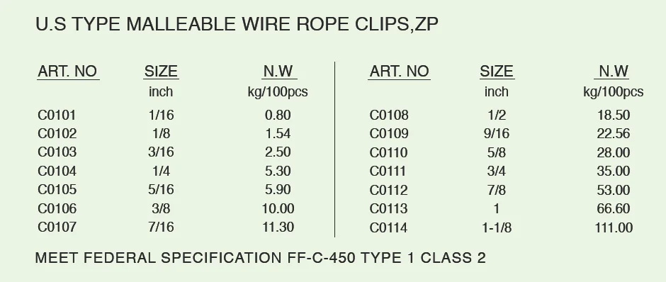 High quality US type 1/4" 5/8" 3/4" casting malleable steel wire rope clip