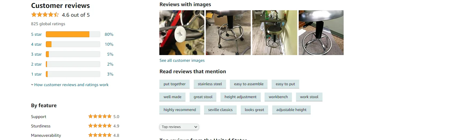 Product Overview * Description Add a modern yet contemporary touch to any room with this sleek Seville Classics Stainless Steel Top Work Stool constructed from industrial-strength chrome plated steel and accented by a sturdy easy to clean brush stainless steel seat top. The pneumatic action 14’’diameter stainless steel seat swivels 360 degrees and adjusts from a height of 25.5’’to 29.75’’. NSF certified for commercial use, this durable work stool is equipped with heavy-duty 1-inch in diameter chrome plated steel legs (19’’diameter base). Easy assembly with no tools required. Ideal for use in kitchens, restaurants, offices, laboratories, warehouses, mail rooms, work centers, and man caves. * Stainless Steel Work Stool * Flat Top Modern style and clean design come home with Seville Classics' Stainless Steel Work Stool. Enjoy all-steel construction with a chrome-plated base and stainless-steel seat. Relax with the built-in foot rest. Stool features NSF certification* and is ready to be used in kitchens, restaurants, offices, laboratories and more. Stainless-steel flat 360° swivel seat Adjustable from 25.5" to 29.75" Supports up to 300 lbs. Built-in footrest * Details Top diameter: 19 in. Height: 25.5 in. to 29.75 in. Base diameter: 19 in. Weight capacity: 300 lbs. Weight: 16 lbs. Easy assembly with no tools required; NSF certified |