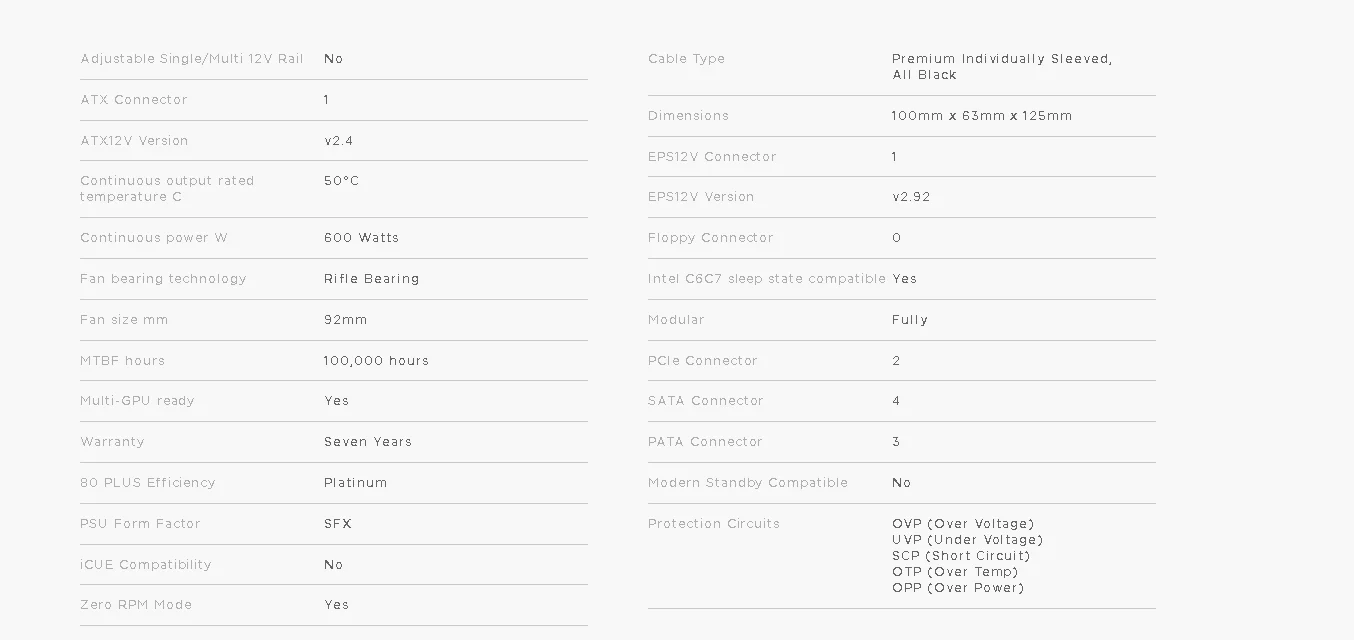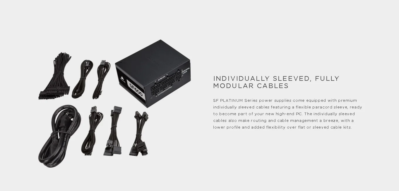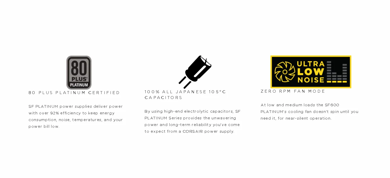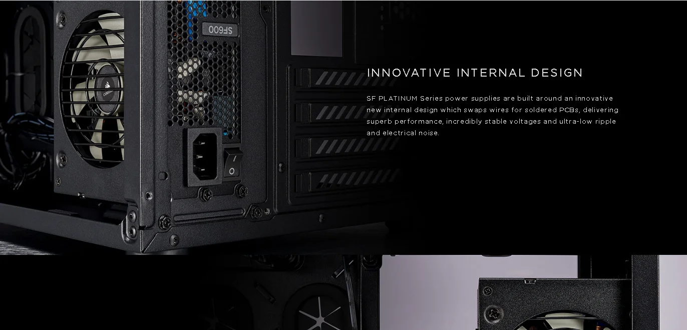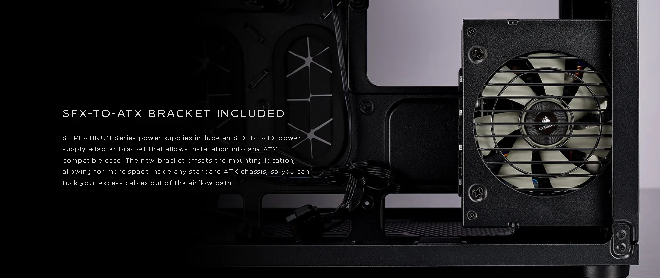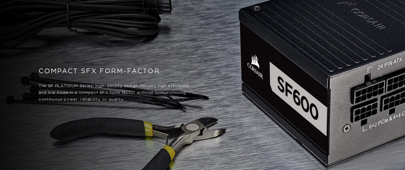 CORSAIR SF Series SFX power supplies offer all the low-noise performance of an elite 80 PLUS Platinum PSU, ready to power the