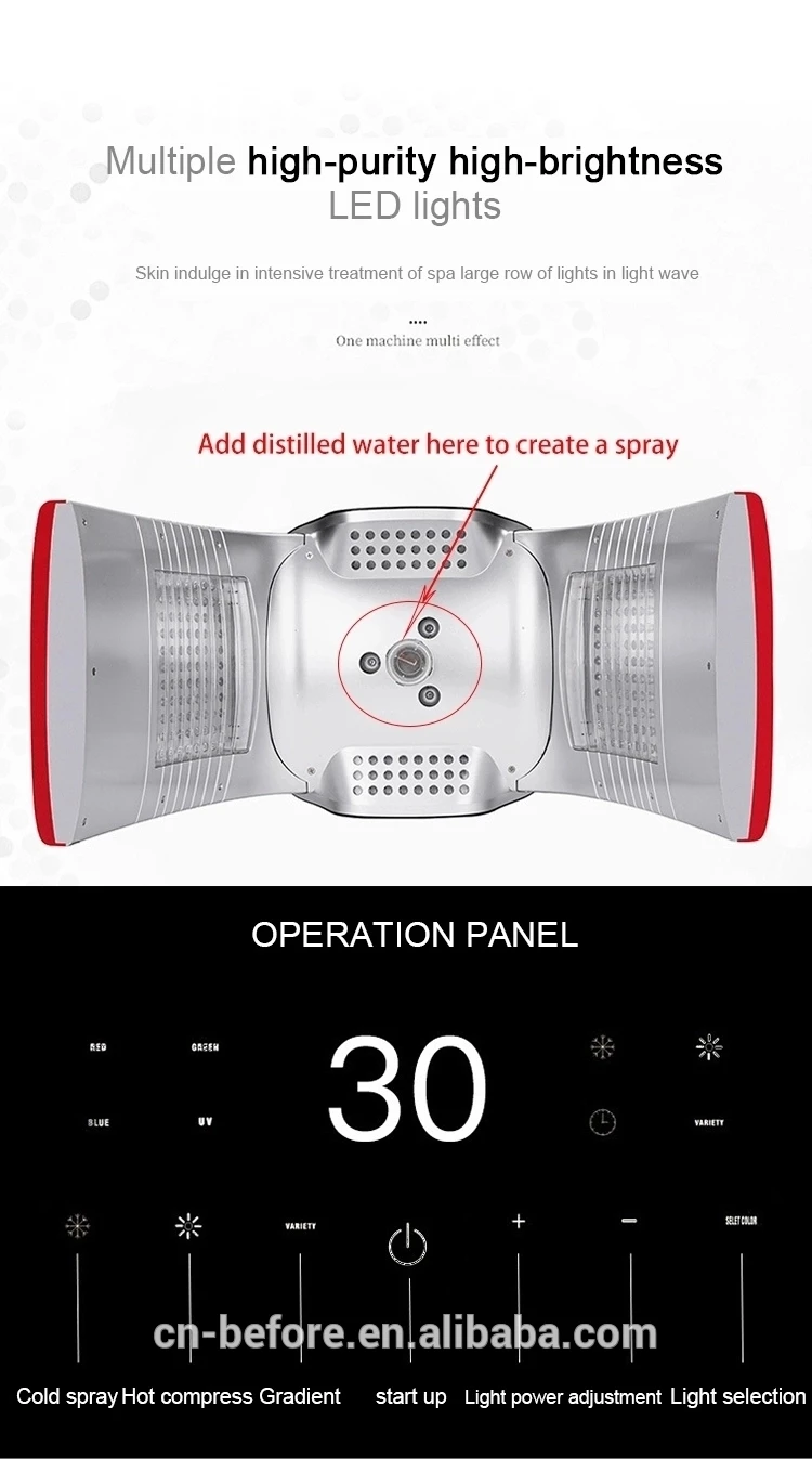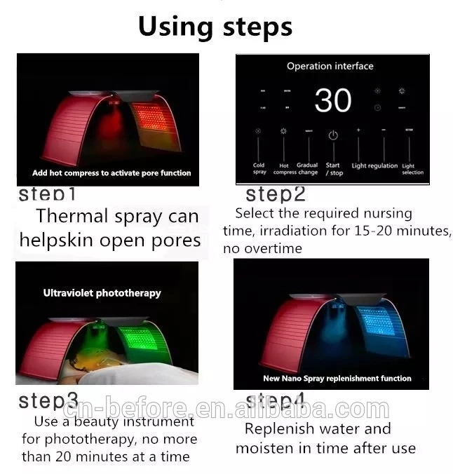 The hot and cold spray LED spectrometer is the latest generation of facial photon skin care equipment. He not only has seven-color photons, he can do cold and hot compresses and apply phototherapy to the face.