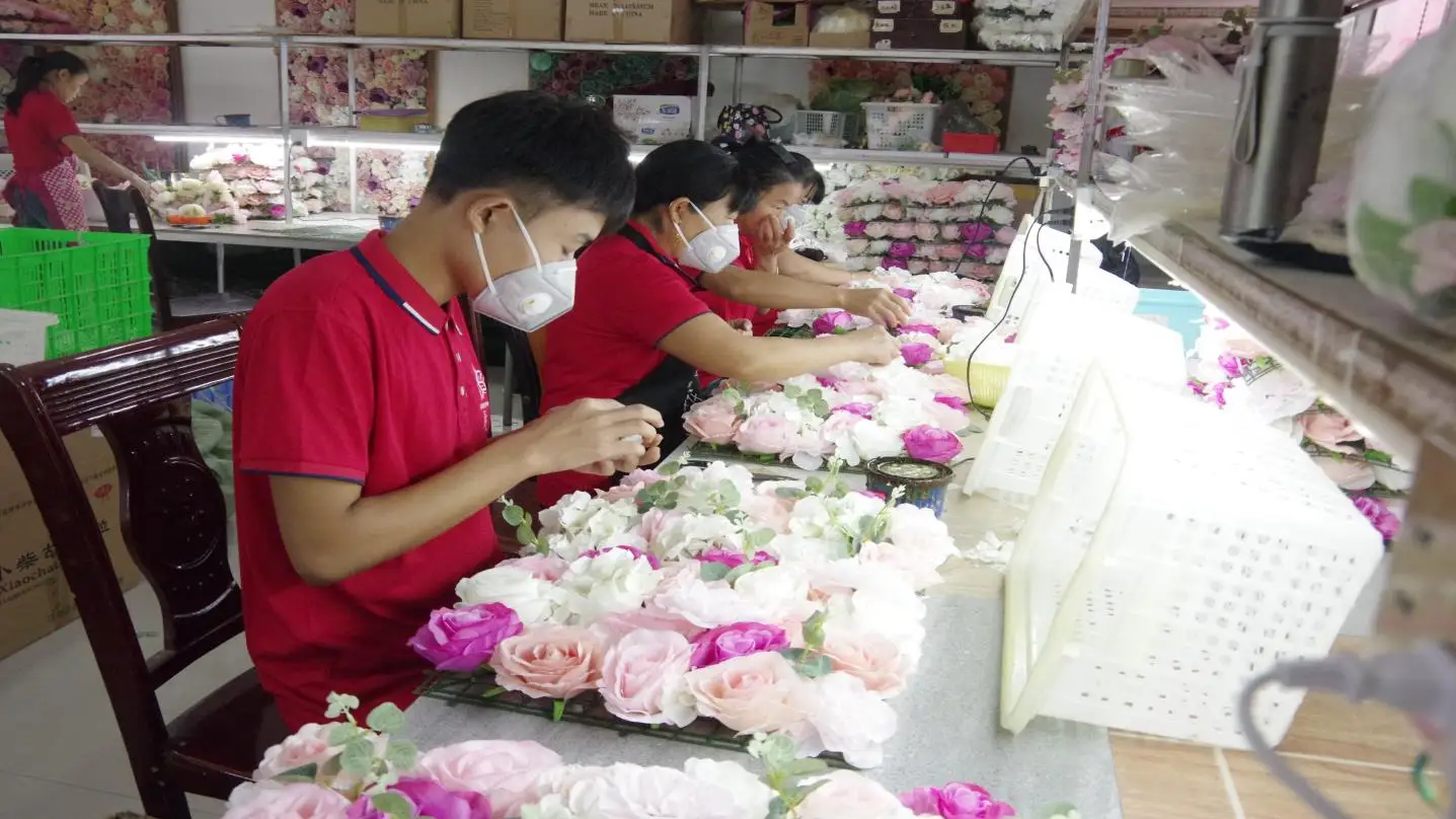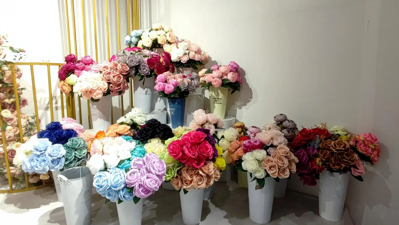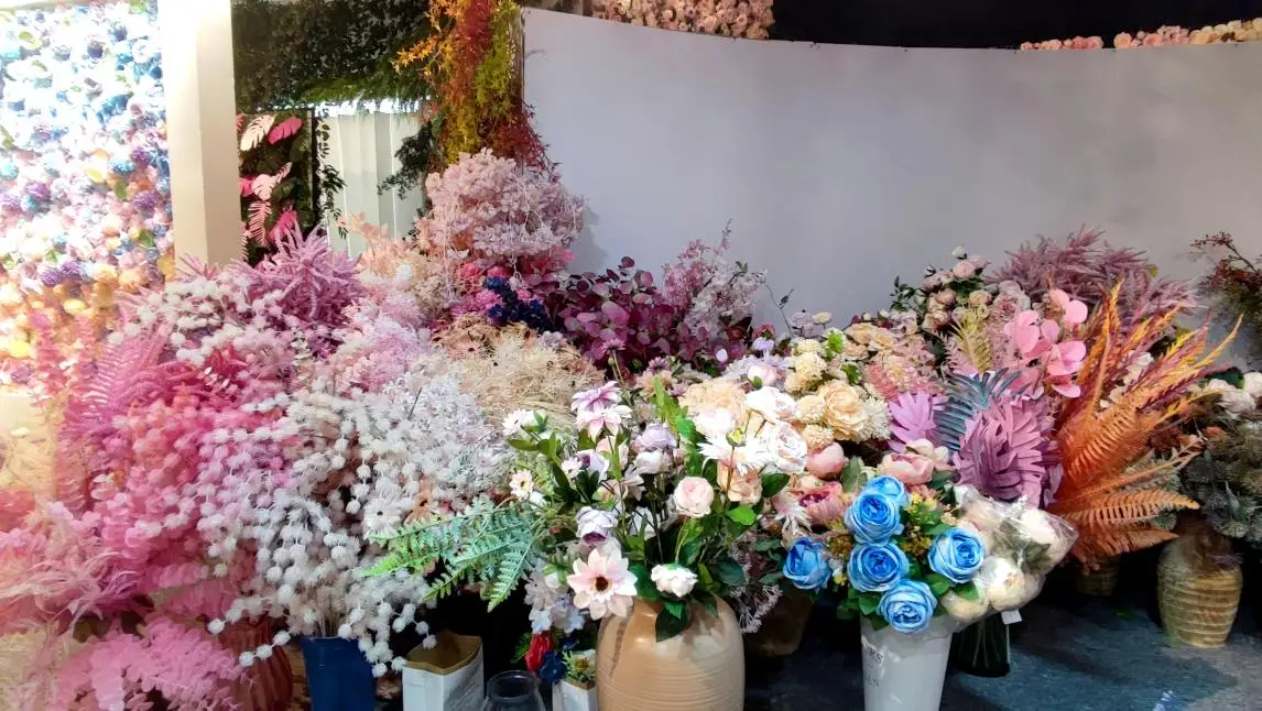 The company is specialized in various kinds of artificial flower heads, flower bunches and flower wall, etc. The main products include the simulation flower such as flower heads of hydrangea, rose, peony, rose vine and sakura vine, and flower wall and flower fence, etc, for wedding ceremony.