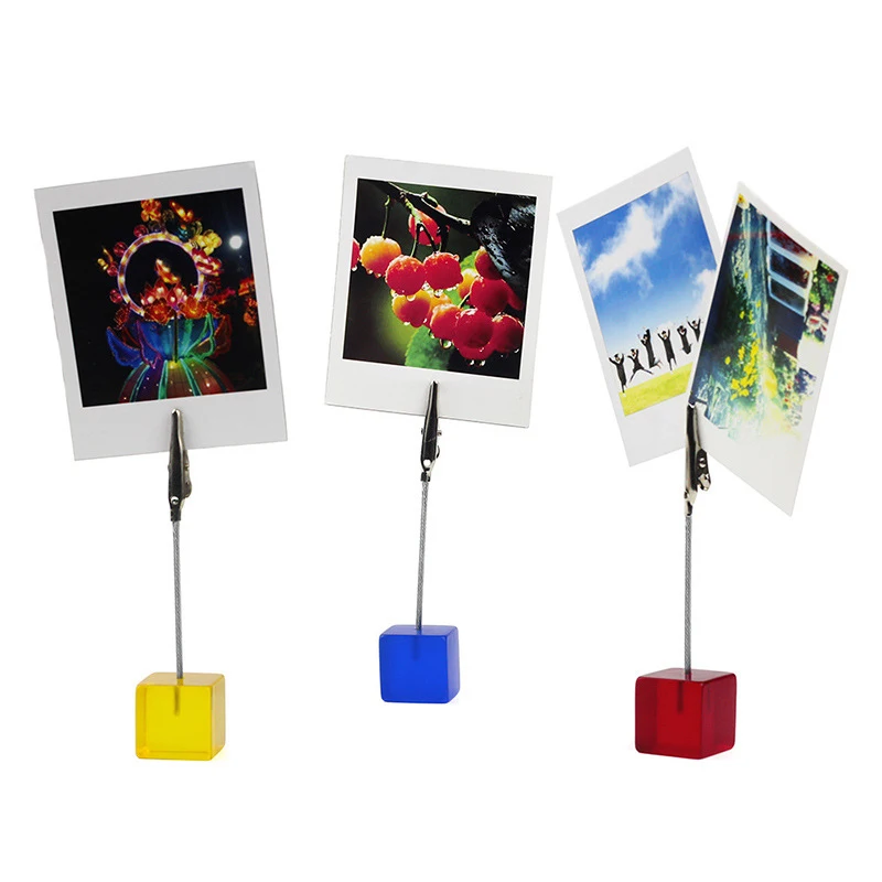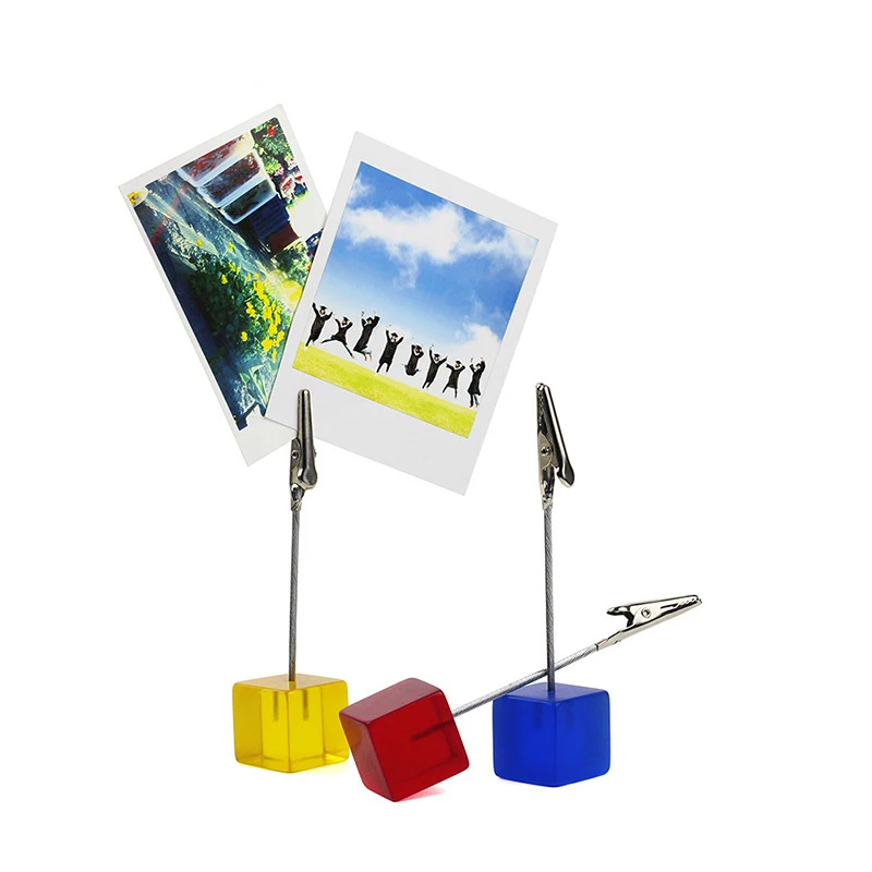 Anti-wear and stable: our cube base place card holders are made of quality resin block with metal clips, both are quality material and can last for a long lifespan, sturdy and not easy to break or crack Practical clip: each wood base table number holder is designed with one alligator clip, convenient for you to clip and replace photos, and you can adjust the angle of the holders by hand for more stability and better view Scope of applications: these cube base place card holders can be applied to hold memo, name card, menu, photo, beautiful pictures and more, fit for office, school, home, bar, coffee shop and more Proper size and reliable support: each wood block base of mini menu holders measures approx. 1 x 1 x 1 inch, small size and light in weight, show clear pictures firmly when take up little table space