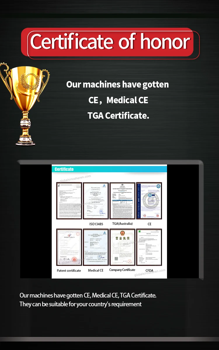 Established in 1999, Beijing Sincoheren S&T Development co., ltd are one of the largest and the earliest professional hi-tech manufacturers of medical and beauty equipments. As a large company, We have our own Research &Development department, factory, international sales departments, Engineers, and QC team. and all the products are approved by ISO13485 ISO9001 Quality system and match with CE certificate. Meanwhile, Our company is the TUV certificate supplier. We have strict QC system and offer high quality products and professional service. Currently the ServiceDepartment has already spread to Australia and Germany. In additon, OEM and ODM is available. It is our desire to find distributors and clients with our high quality products and help you to build your reputation in your market.