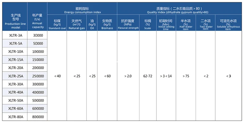 Selection of process plan: Using natural gas as a heat source, a mature boiling furnace calcination process is selected. The main equipment adopts special natural gypsum crusher and pulverizer, boiling calciner and cooling equipment. Boiling furnace model:SG/T-3/380 Heat exchange area:500㎡ Capacity:10t/h Design Capacity:15t/h Heat exchange:2800,000 kcal Design heat exchange:3000,000 kcal Calorie consumption index:350,000 kcal