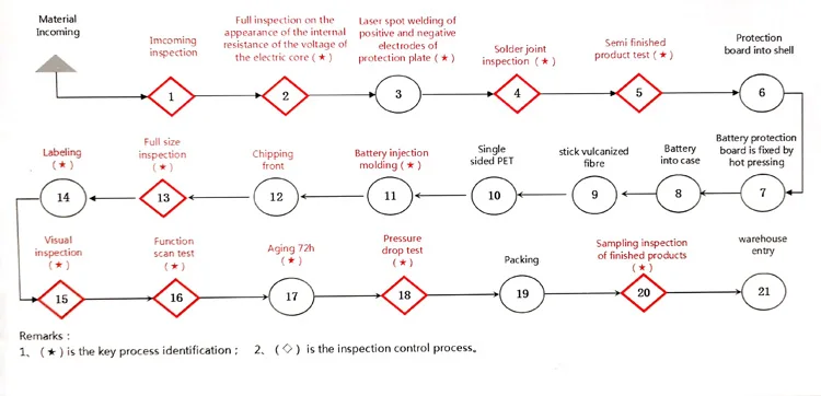 Visual Inspection | There should not be any remarkable scratches, cracks, bolts, cauterization, deformations, swelling, leakage and so on the surface of the cell. | ||||