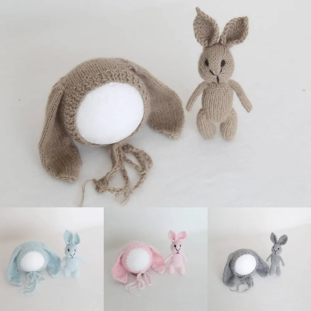 Knit Fluffy Bunny Hat and Toy Set