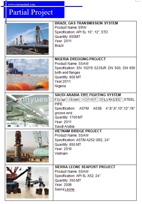 Tianjin Xinyue Industrial and Trade Co., Ltd. As a leading ERW and SSAW steel pipe manufacturer in China, we can supply high quality petroleum & gas line pipe, water pipe and construction pipe.