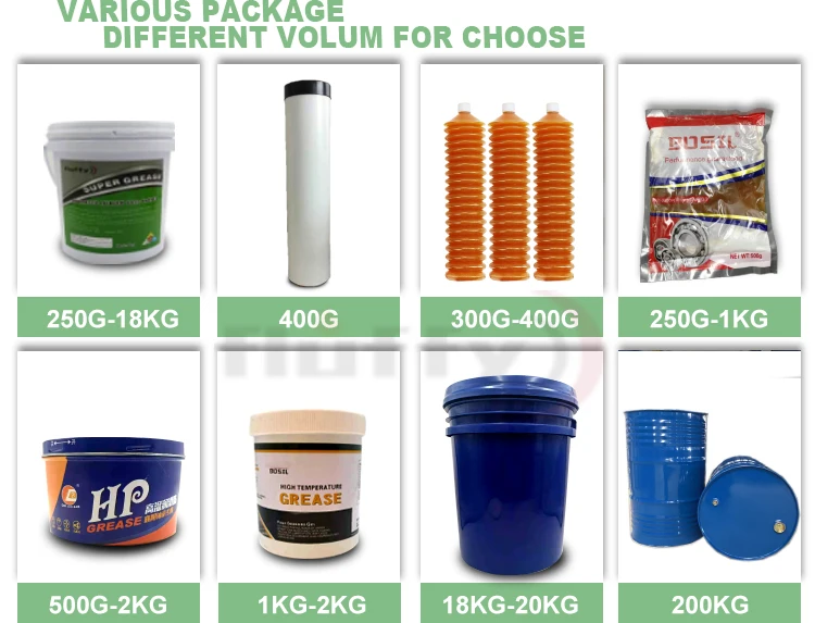 Instructions | It belongs to high temperature grease with no drop point, excellent extreme pressure and anti-wear performance. Suitable for heavy mining machinery,excavator breaking hammer and automobile ball cage joint |