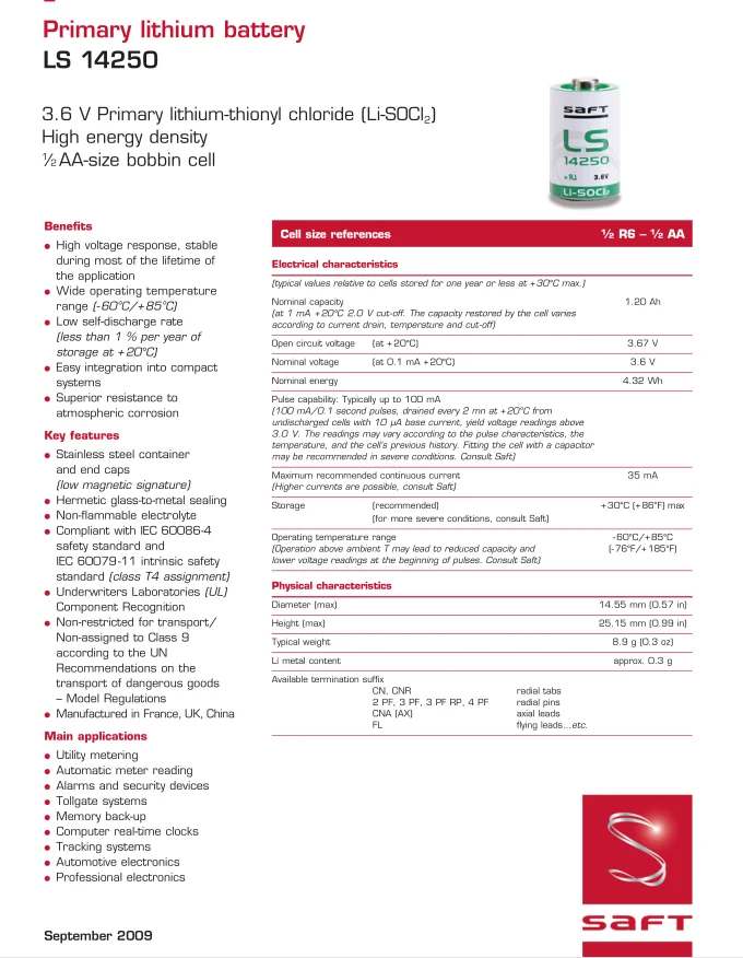Model Name | SAFT LS14250 |