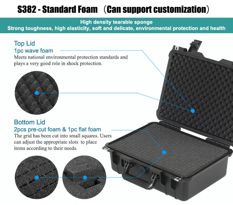 Standard Foam: | Top lid: 1 pc wave foam / Base lid: 2 pcs pre-cut foam & 1pc flat foam |