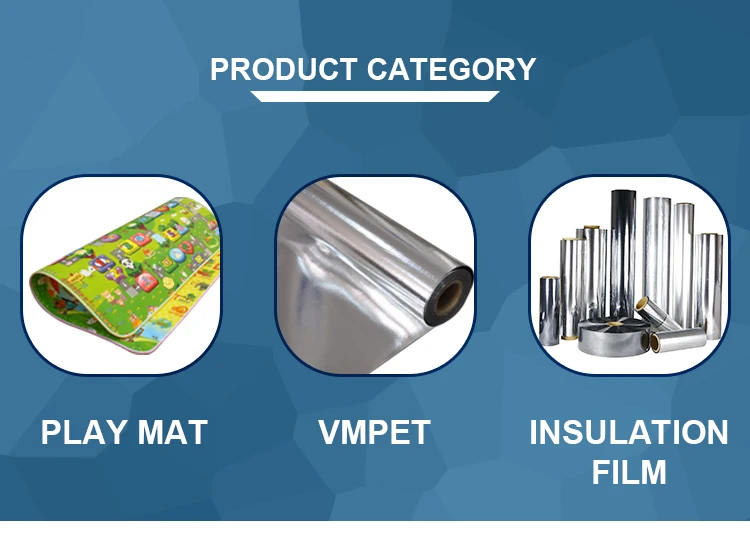 Similar structure | 1.Alu(Metallized PET)+PE+XPE/EPE 2.Alu(Metallized PET)+PE+Woven+PE+XPE/EPE 3.Alu(Metallized PET)+PE+XPE/EPE+PE+ Bubble+PE+Alu(Metallized PET) 4. Those can be produced as Anti-glare or fire-resistant products 5. Can be customized |