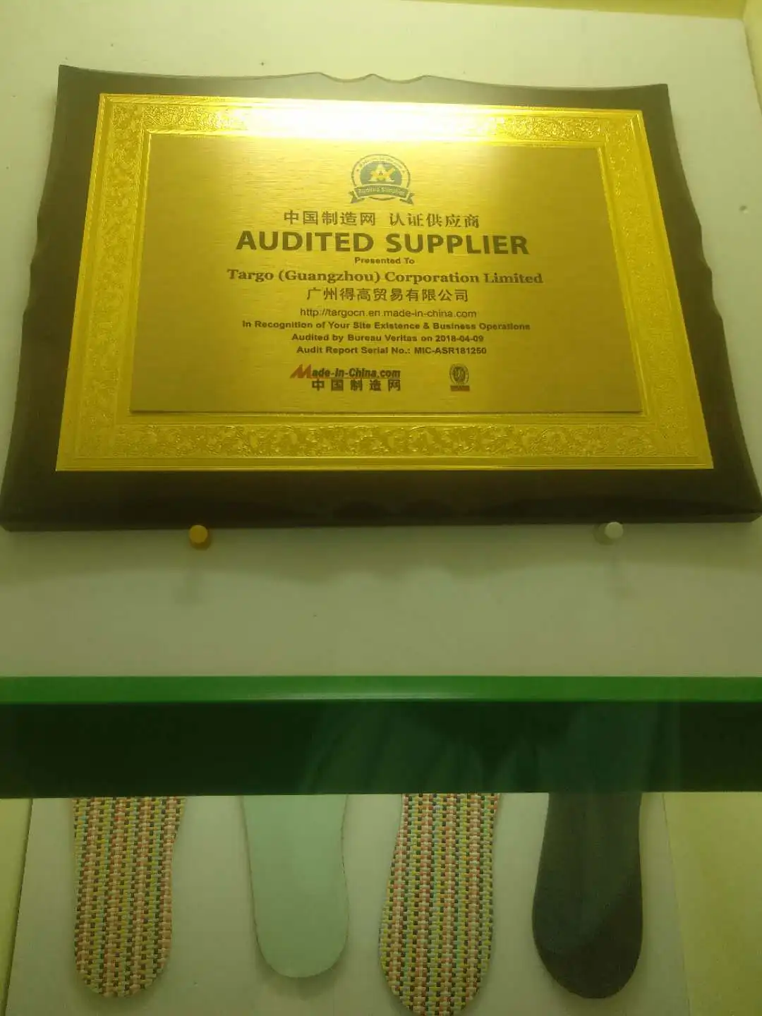 Targo Corporation Limited is established in 2008, located in Xintang Town, Guangzhou, near Dongguan, which is famous for apparel and accessories industry. We are specialized in footcare and shoecare product and hold three plants which are mainly producing comfort insole, sport insole, PU gel insole, orthotic insole, height increasing insole and other footcare or shoecare accessories. Targo Corporation, as a trading division, is handing overseas customers and sourcing other items which can not be produced in our own factories. We have a senior work team with more than 15 years experience for insole manufacturing industry as well as foreign trading experience. Our products are mainly exported to those countries and regions like Japan, Europe, America and Malaysia, etc.which have very strict quality standards. As the professional exporter of insole and other shoe accessories, we can give you the best price and outstanding service. It is our good hope to promote, by joint efforts, both trade and friendship to our mutual benefit.