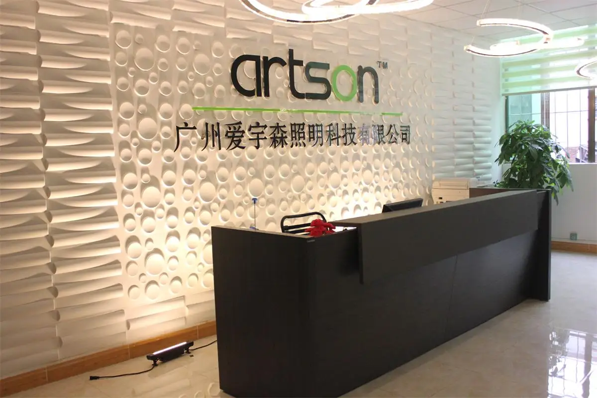 ARTSON LIGHT CO., LTD is an approved National high-tech company, integrating R&D, production and sales. We locate in Guangzhou, with 7000 square dustless production workshop, 9 production lines and beautiful office.ISO 9001 quality management system is necessary, besides of CE & ROHS certification, we also approved by GS from TUV.