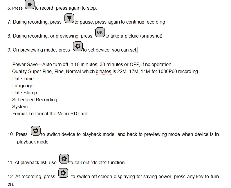 Record Quality | Max 22Mbps@1080P 60fps |