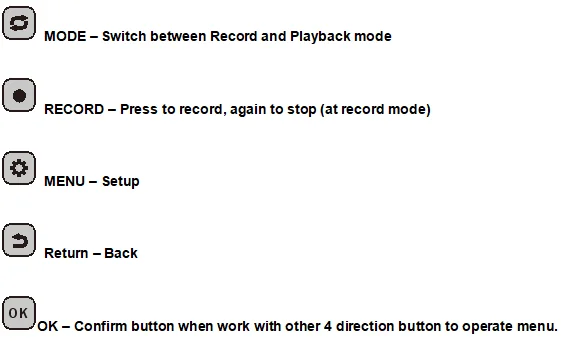 3, MODE – Switch between Record and Playback mode