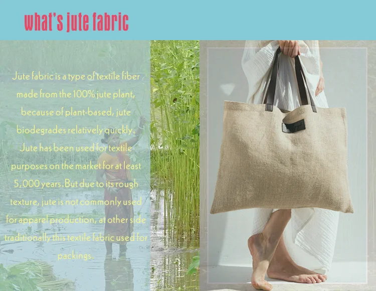 Main Material | option 1: 50x50 natural jute fabric with PE laminated, option 2: 900D jute fabric with PU laminated, | ||||||