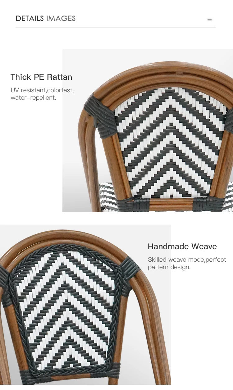 Seat Height : 450mm Material :Aluminum frame with bamboo like, PE rattan Available Color :Customize available