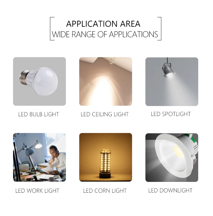 Application | LED spotlight, LED downlight, LED growlight, LED tracking light, LED bulb, LED streetlight |