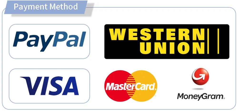 Currency:USD,EUR,JPY,CAD,AUD,HKD,GBP,CNY,CHF;Accepted Payment Type: T/T,L/C,D/P D/A,MoneyGram,Credit Card,PayPal,Western