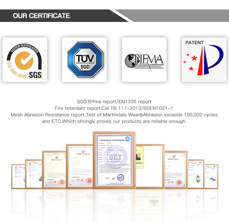 Material | - Imported mesh pass international standard test - Black frame - Backrest with separated flexible lumbar support - Exclusive patent of 3-wire line control mechanism - 100mm imported Class4 Gas lift - Five star aluminum base pass BIFMA test: 700mm - 65mm PU castors |
