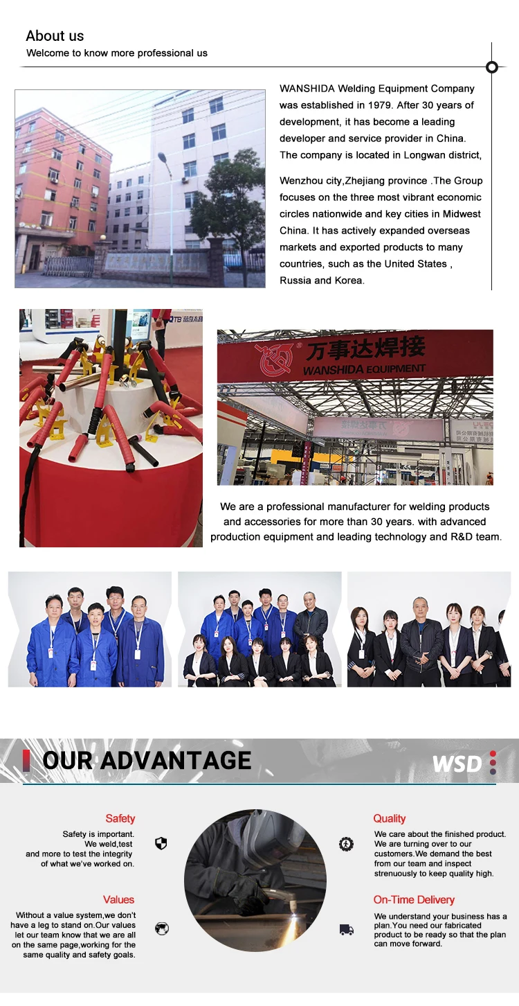 WANSHIDA Welding Equipment Company was established in 1979. After 30 years of development, it has become a leading developer and service provider in China.our products are well know in more than 60 countries and regions all over the world with high quality