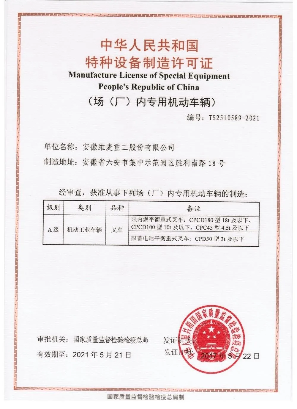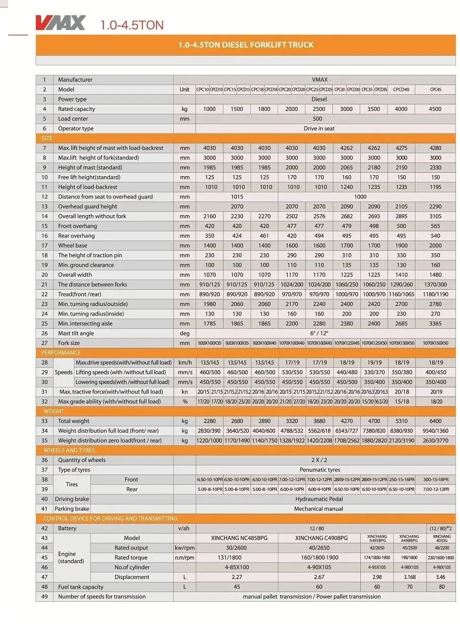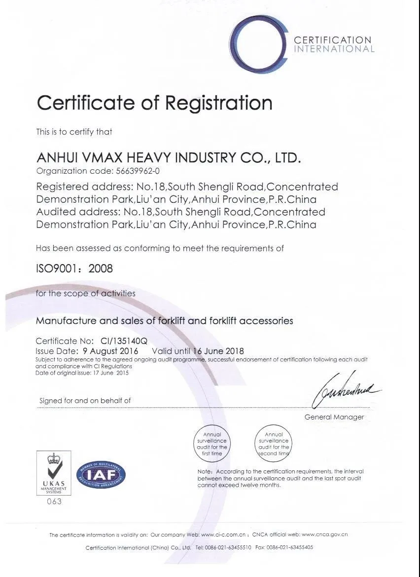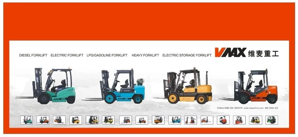 Anhui VMAX Heavy Industry Co.,Ltd is a major enterprise in the forklift truck manufacturing industry in China.VMAX has a complete product range of material handling equipment, from 1-16t internal combustion counterbalance forklift, 1-5t electric counterbalance forklift truck, warehouse equipment, reach stacker and more. Utilizing our state-of-art R&D center, our provincial level technology center, efficient production support system and our strong marketing leading system, more 40 abroad agents, all these offers strong support to our customers.