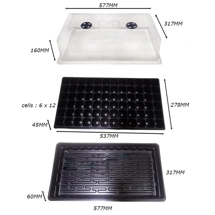 72 Nursery Plant Seedling Trays Plastic Seed Propagation Tray with Dome
