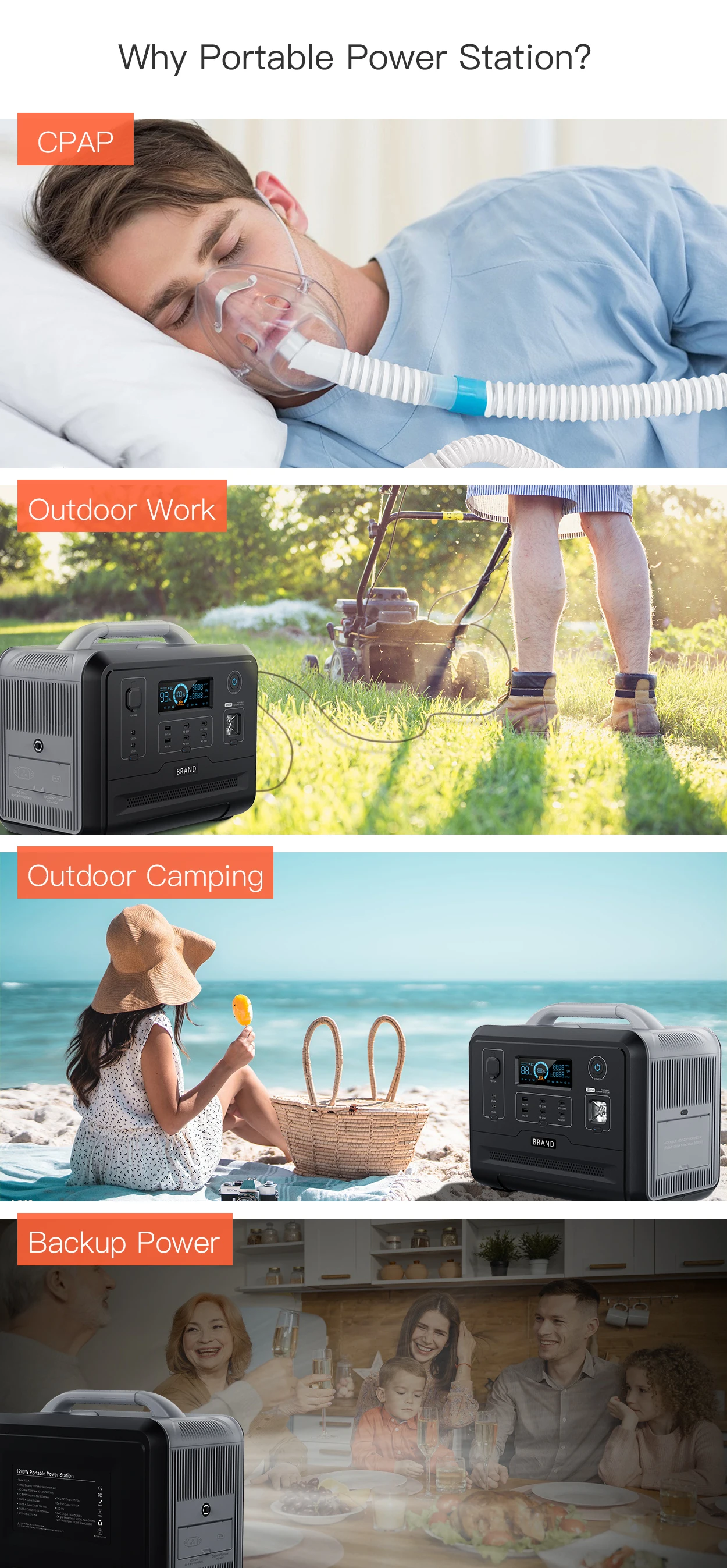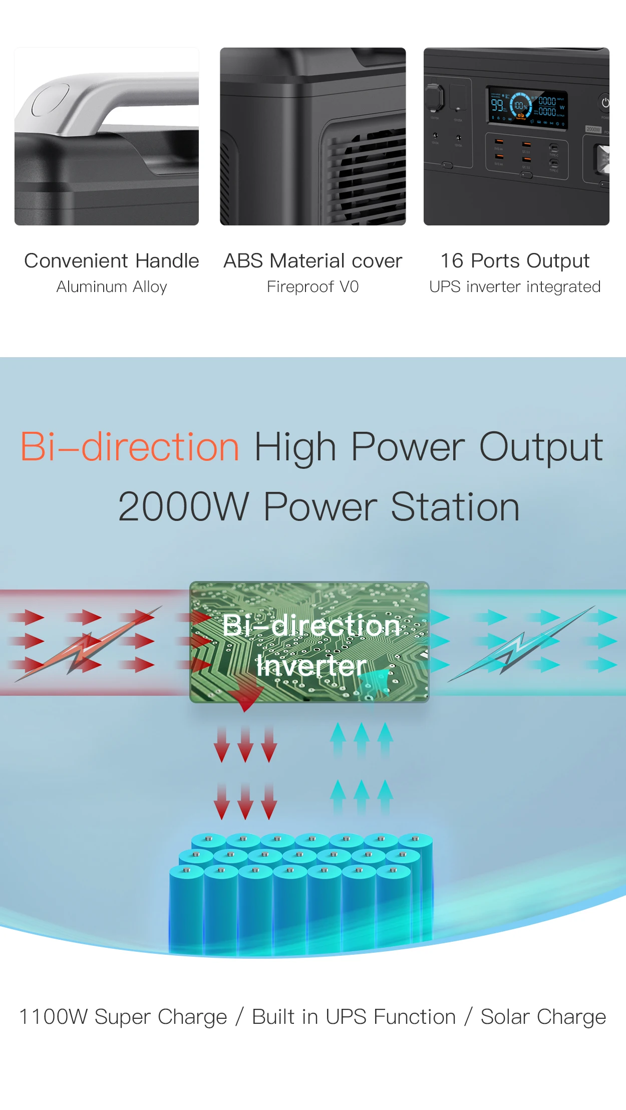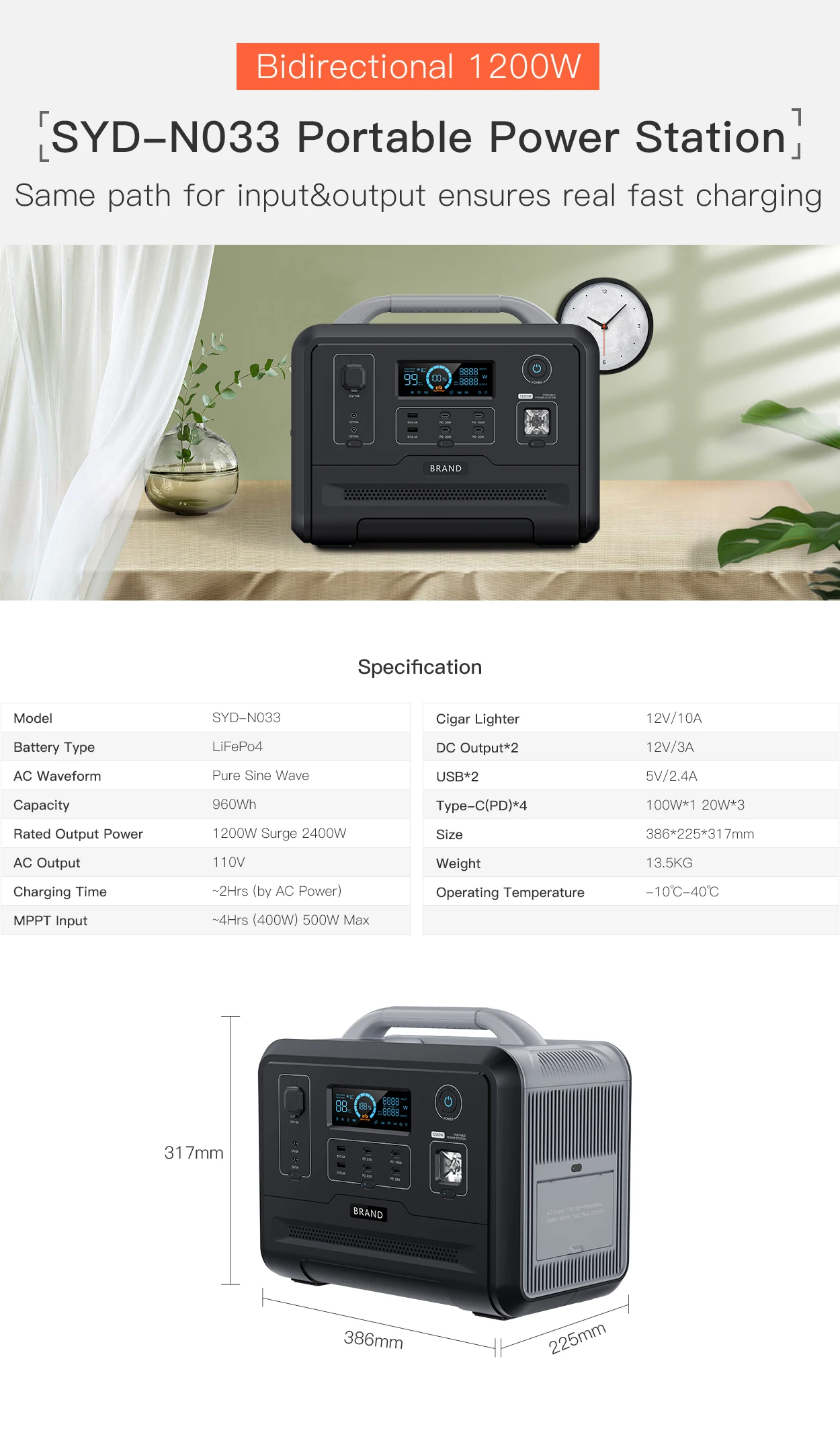 Capacity | 960Wh,LiFePo4 | AC Output | 1200W(2400W peak) |