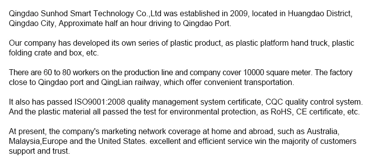 2.Folded crate has many advantages,such as light weiht,space save,and easy to carry.they are widely use in store, delievery centers, clothing factory, fruits and vegetables transportation and so on.