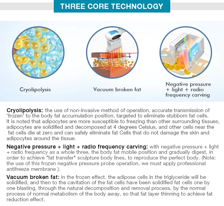 System | Vacuum cryolipolysis + cavitation + rf system+ lipo laser |