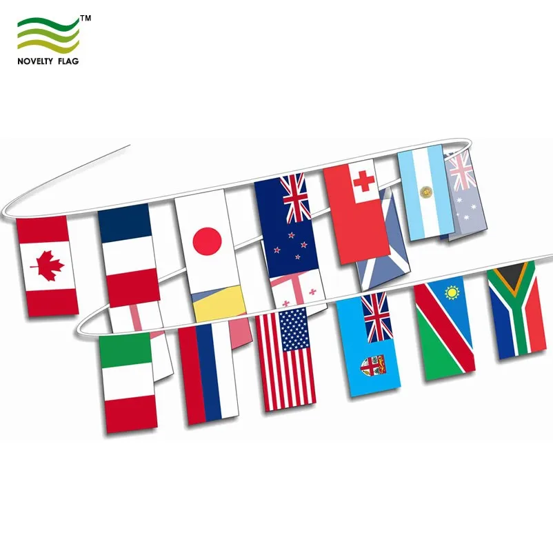 The common shape of pennant string bunting flag banner available is triangular, rectangular, square, star, round if no special requirement.