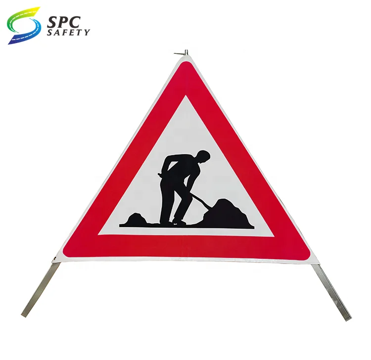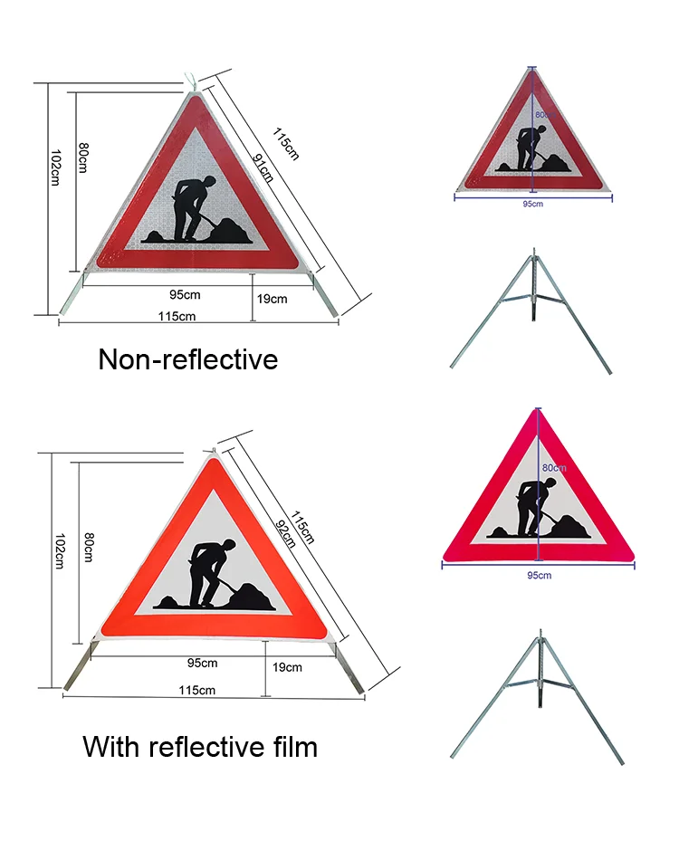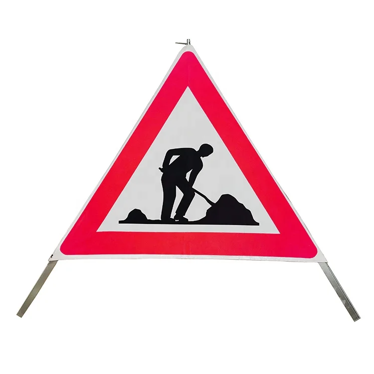 EU Construction site portable Roll up foldable hazard reminder reflective safety warning marker Tent tripod Road traffic sign