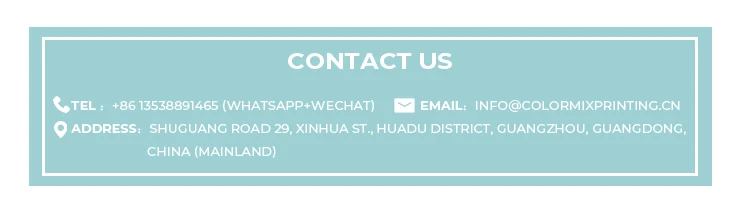 Please send us your purchase order via Email (Info @colormixprinting.cn), or you can request us to send you the proforma invoice for your order. We need to know the following information for your order: