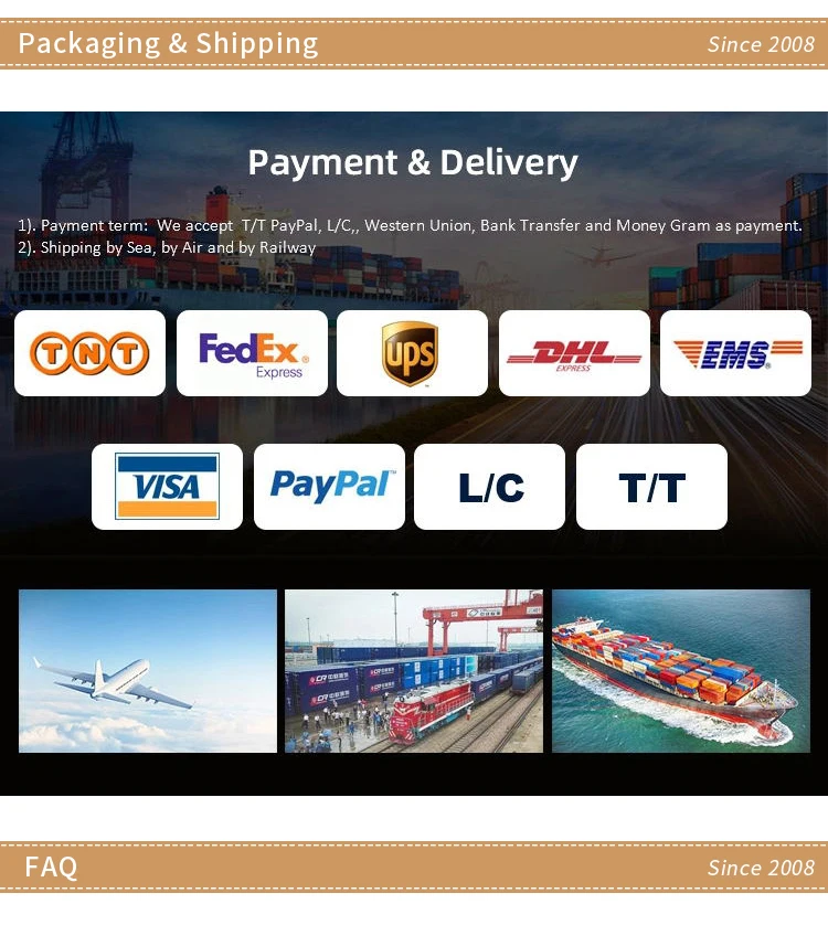 5) What's the payment? A: Usually we accept T/T, wealso can accept L/C and Western Union.