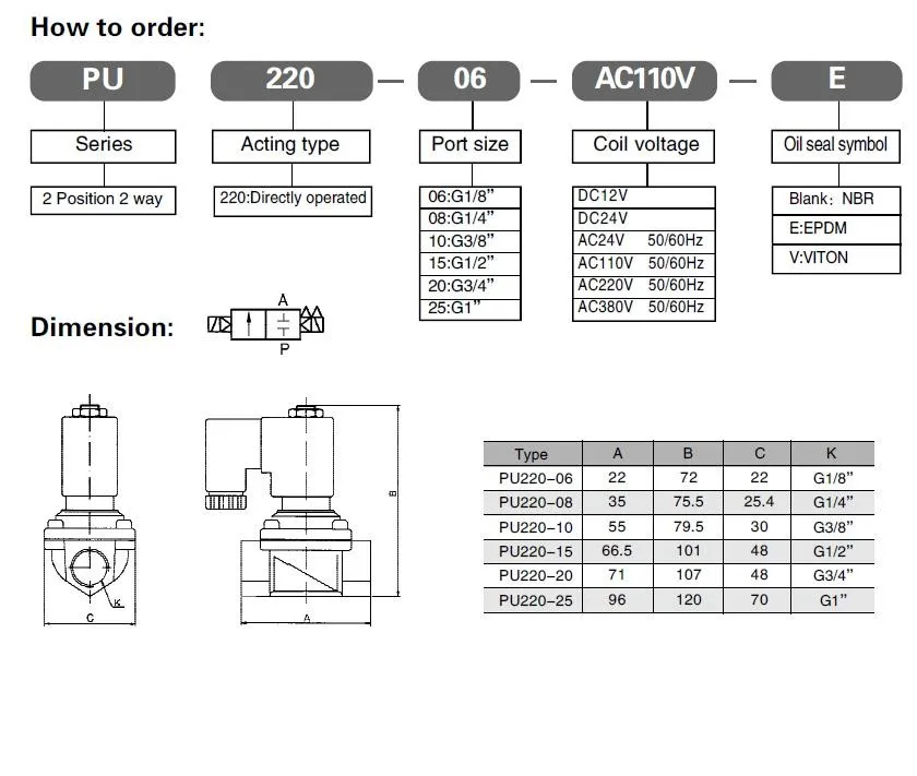 Specification For PU Series Brass Solenoid Valve | ||||||||||||